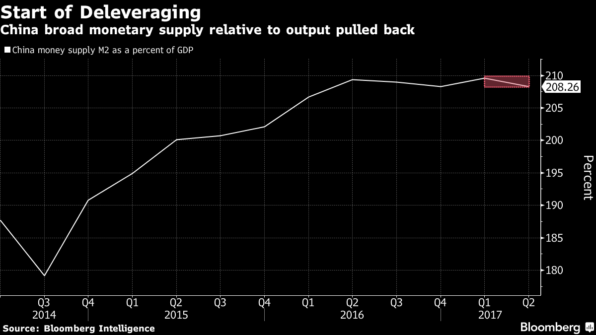 In China’s case it’s the relentless buildup of risks caused by the debt-fueled investment that’s contributing to growth, a development tackled by a major meeting of top leaders in Beijing at the weekend. Until now, regulators have homed in on financial-sector excesses; that probe is now widening to debt in the broader economy, a shift that prompted a sell-off in domestic stocks.