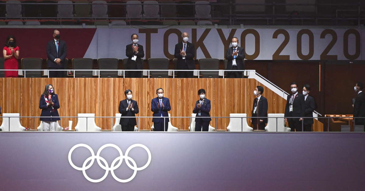 Japan's Emperor Naruhito (2nd L) applauds past IOC Member Anita DeFrantz (L) as they attend the opening ceremony of the Tokyo 2020 Olympic Games, at the Olympic Stadium in Tokyo, on 23 July, 2021. (AFP Photo)